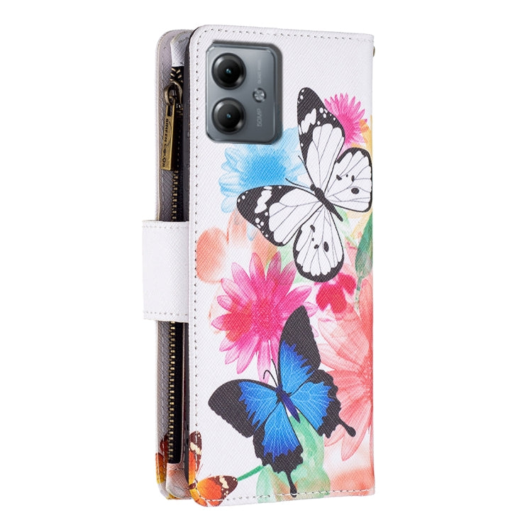 Funda de Cuero con Cremallera para Motorola Moto G14 4G con Dibujo de Dos Mariposas