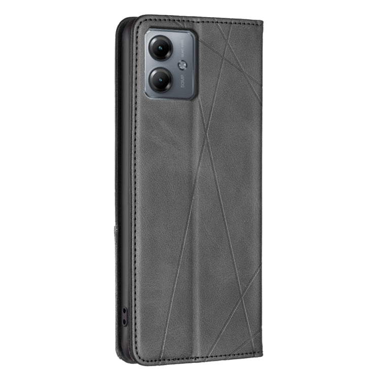 Funda de Cuero Magnético para Motorola Moto G14 4G con Textura de Rombo (Negro)