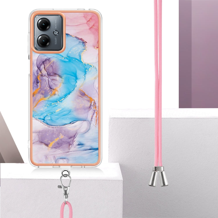Estuche para Motorola Moto G14 TPU Imd con Galvanoplastia y Cordón (Mármol Azul)