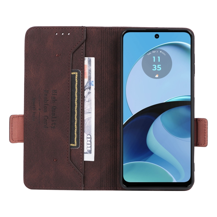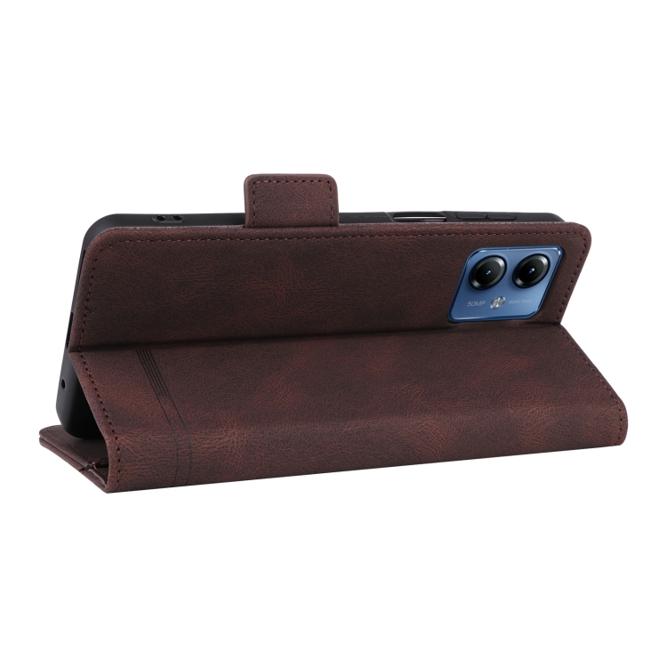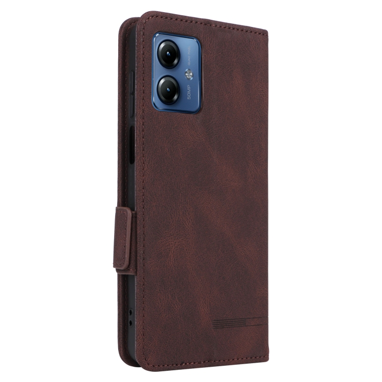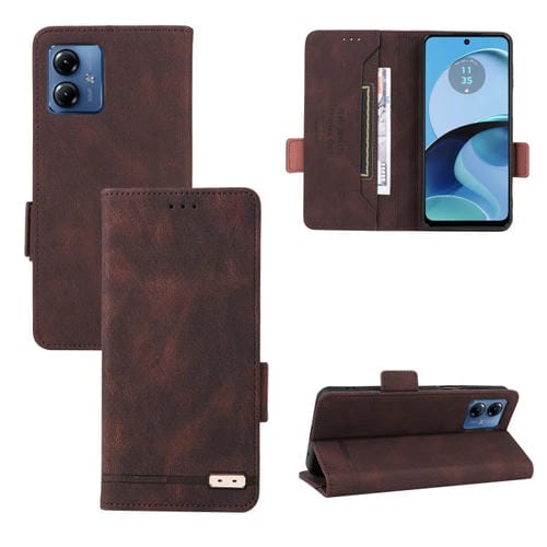 Funda de Cuero para Motorola Moto G14 con Cierre Magnético (Marrón)