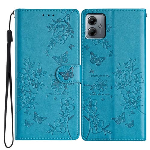 Funda de Cuero para Motorola Moto G14 con Mariposas y Flores (Azul)
