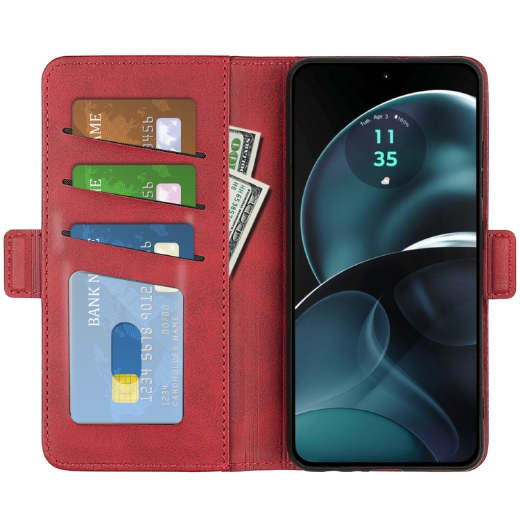 Funda de Cuero para Motorola Moto G14 con Tapa Horizontal y Hebilla Magnética de Doble Cara (Rojo)