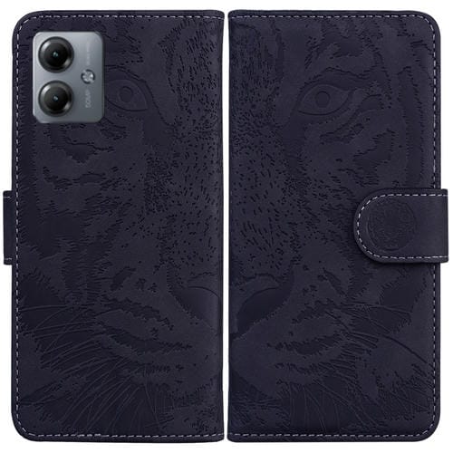 Funda de Cuero para Motorola Moto G14 con Patrón Tiger Embossed (Negro)