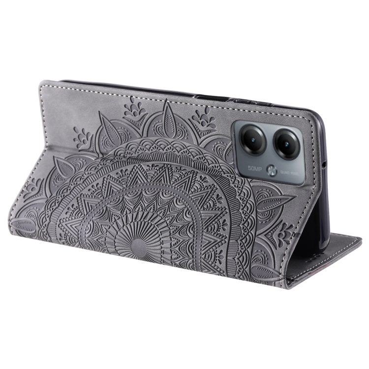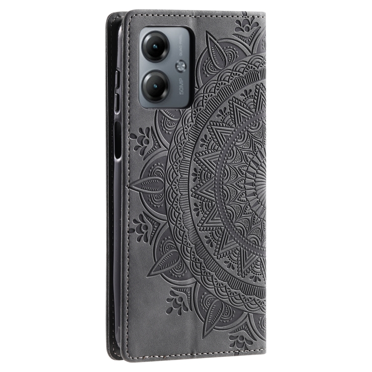 Funda de Cuero Magnética en Relieve para Motorola Moto G14 Totem (Gris)