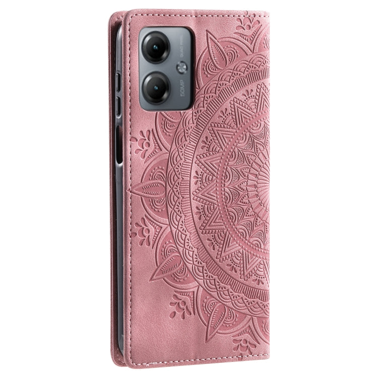 Funda de Cuero Magnética Totem para Motorola Moto G14 con Relieve (Oro Rosa)