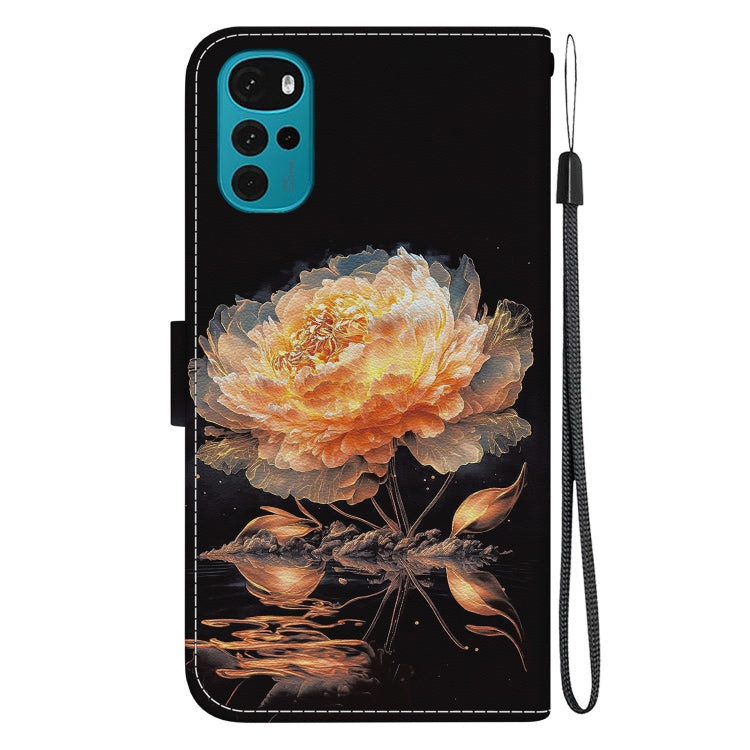 Estuche de Cuero para Motorola Moto G22 con Dibujo Coloreado y Textura de Cristal (Peonía Dorada)