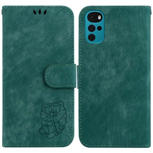 For Motorola Moto G22 Little Tiger Embossed Leather Phone Case(Green)