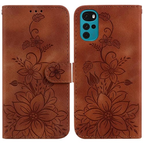 Funda de Cuero en Relieve para Motorola Moto G22 Lily (Marrón)