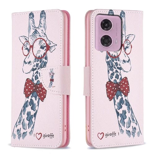 Funda de Cuero para Motorola Moto G24 con Patrón de Dibujo de Colores (Jirafa)