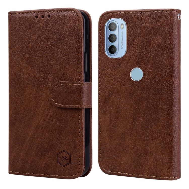 Funda para Motorola Moto G31 / G41 PU + TPU con Textura de Cuero Aceitoso (Marrón)