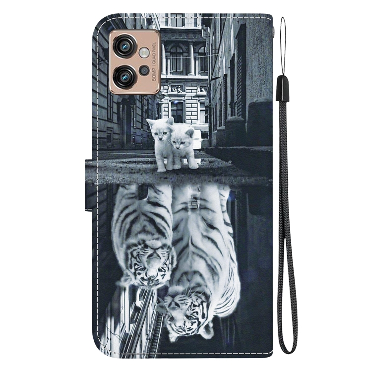 Funda de Cuero para Motorola Moto G32 con Dibujo Coloreado y Textura de Cristal (Reflejo de Tigre de Gato)