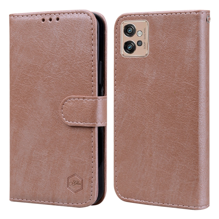 Funda para Motorola Moto G32 Sensación de Piel Textura Cuero Aceitoso PU + TPU (Champán)