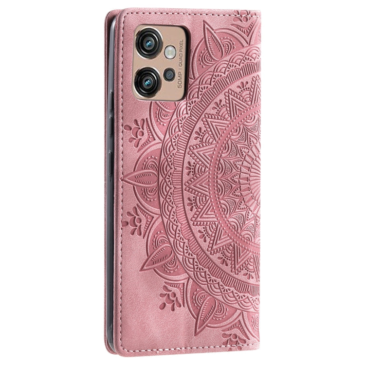 Funda de Cuero Magnética Totem para Motorola Moto G32 con Relieve (Oro Rosa)