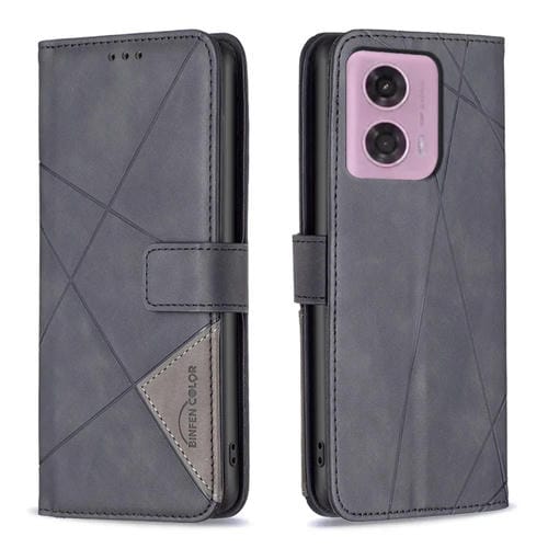 Funda de Cuero para Motorola Moto G34 5G con Textura de Rombo y Hebilla Magnética (Negro)