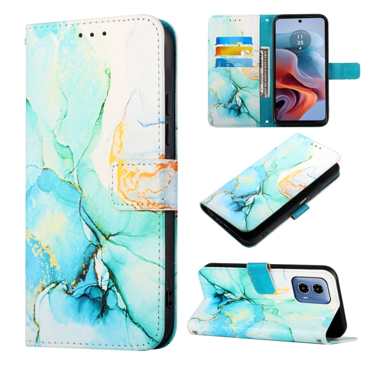 Funda de Cuero para Motorola Moto G34 Pt003 con Tapa y Patrón de Mármol (Verde)