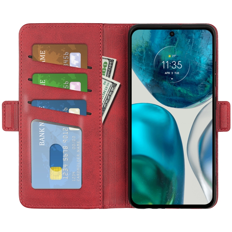 Para Motorola Moto G42 Caja de teléfono de cuero de hebilla magnética de doble lado (rojo)