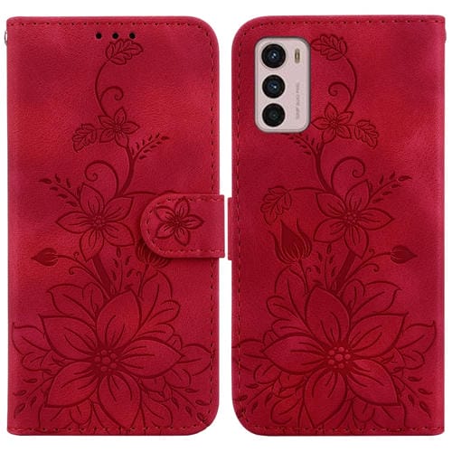 Funda de Cuero para Motorola Moto G42 con Relieve Lily (Rojo)