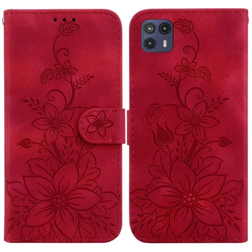For Motorola Moto G50 5G Lily Embossed Leather Phone Case(Red)