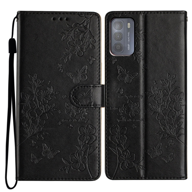 Funda de Cuero para Motorola Moto G50 con Mariposas y Flores (Negro)