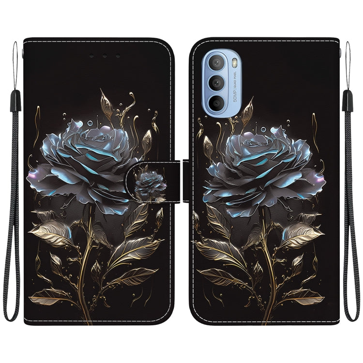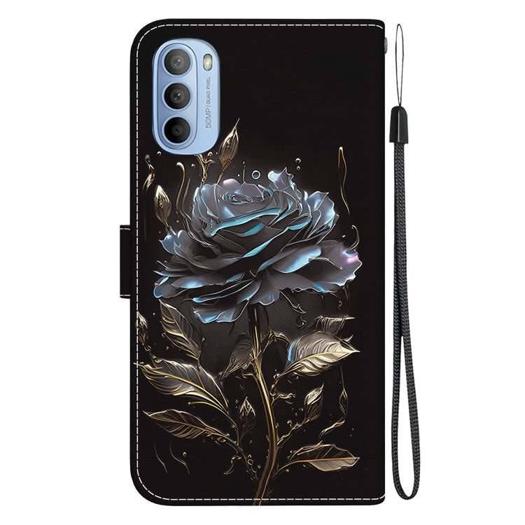 Funda de Cuero para Motorola Moto G51 con Dibujo Coloreado y Textura de Cristal (Rosa Negra)