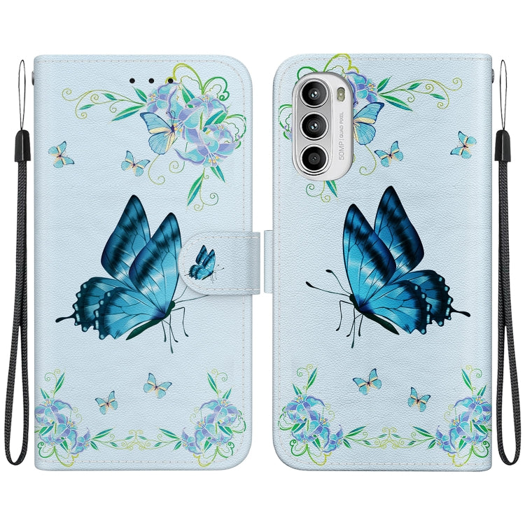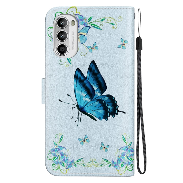 Funda de Cuero para Motorola Moto G52 con Dibujo Coloreado y Textura de Cristal (Pensamientos Azules)