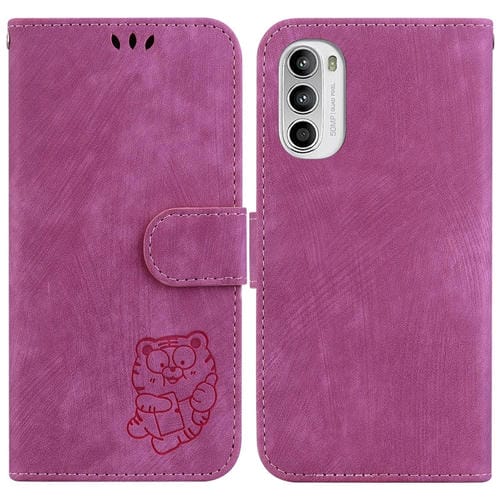 For Motorola Moto G52 Little Tiger Embossed Leather Case(Rose Red)