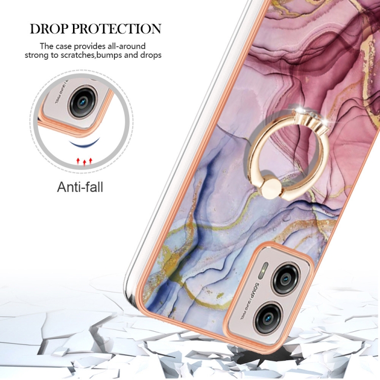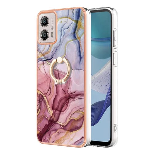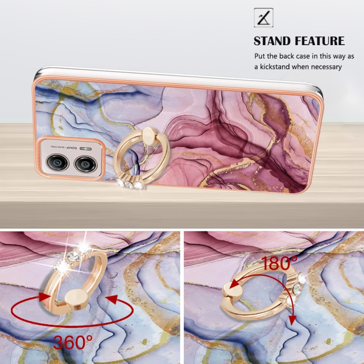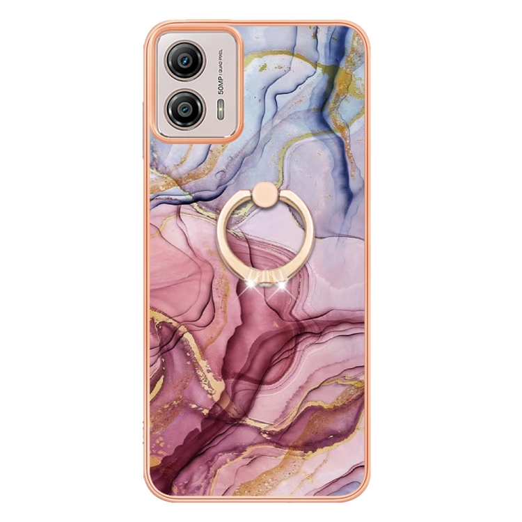 Caja de teléfono Motorola Moto G53 5G IMD doble cara Mármol galvanizado con anillo (Rose Red)
