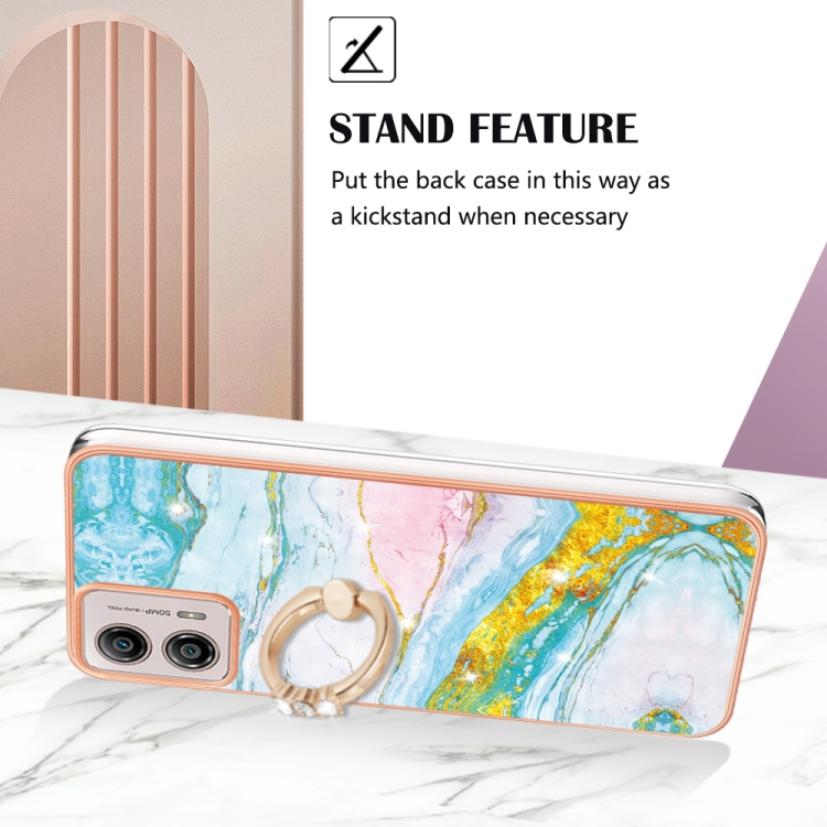 - 1x Funda Motorola Moto G53 5G Galvanoplastia Mármol IMD TPU con Soporte para Anillo (Verde)