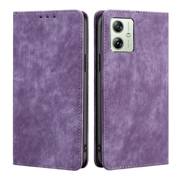 Estuche para Motorola Moto G54 5G Eu Edition Cuero Magnético con Cepillo Antirrobo Rfid (Púrpura)