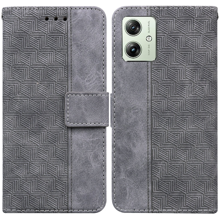 Funda de Cuero para Motorola Moto G54 con Relieve Geométrico (Gris)