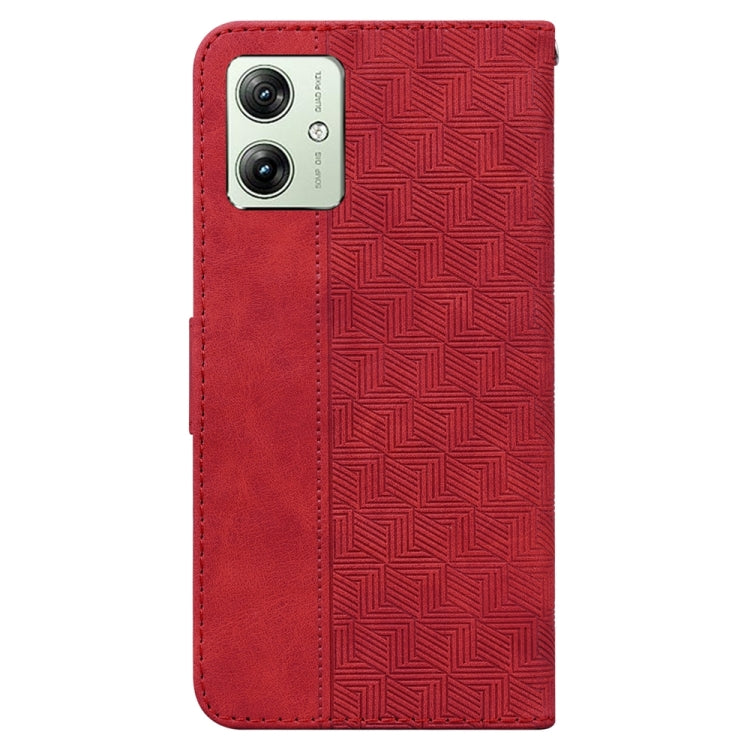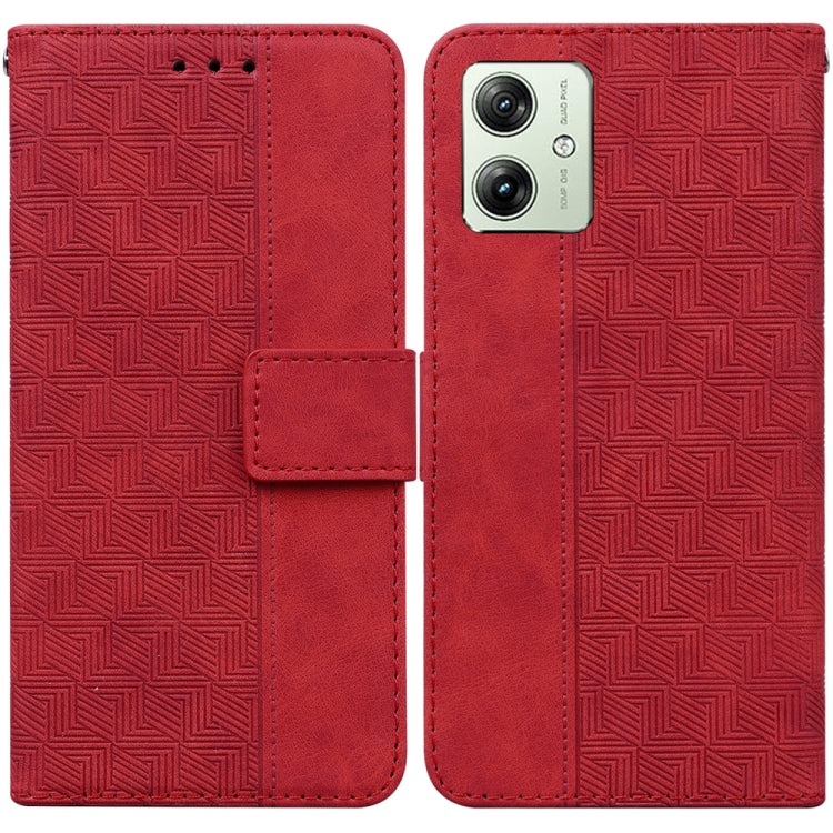 Funda de Cuero para Motorola Moto G54 con Relieve Geométrico (Rojo)