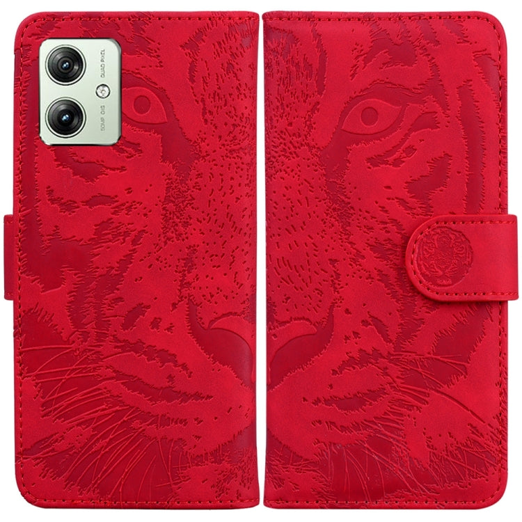 Funda de Cuero para Motorola Moto G54 con Diseño Tiger Embossing (Rojo)