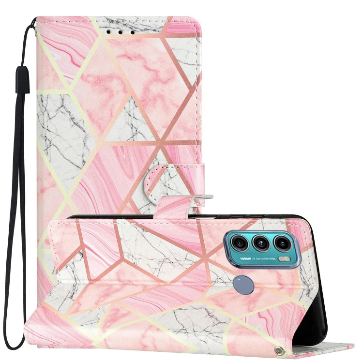 Estuche para Motorola Moto G60 de Cuero con Dibujo Coloreado Mármol Rosa