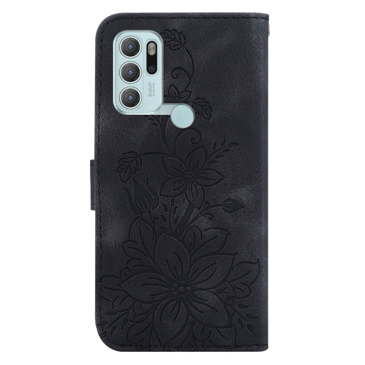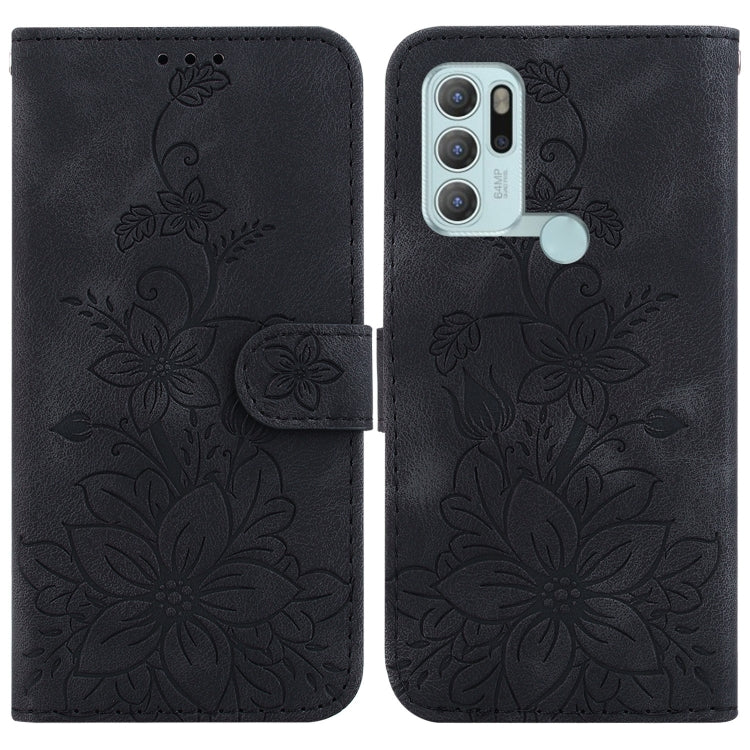 Funda de Cuero para Motorola Moto G60S Lily con Relieve (Negro)