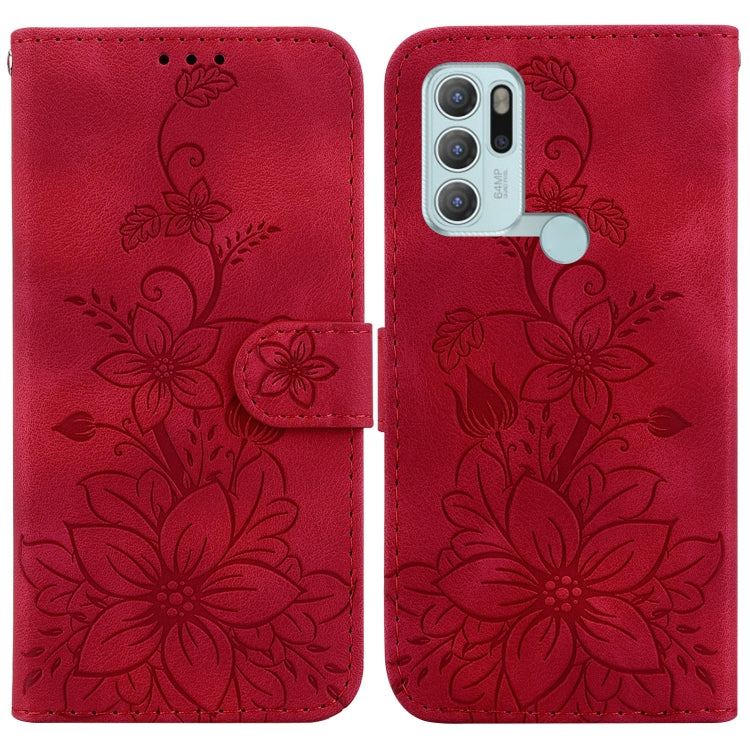 Funda para Motorola Moto G60S Lily de Cuero en Relieve (Rojo)