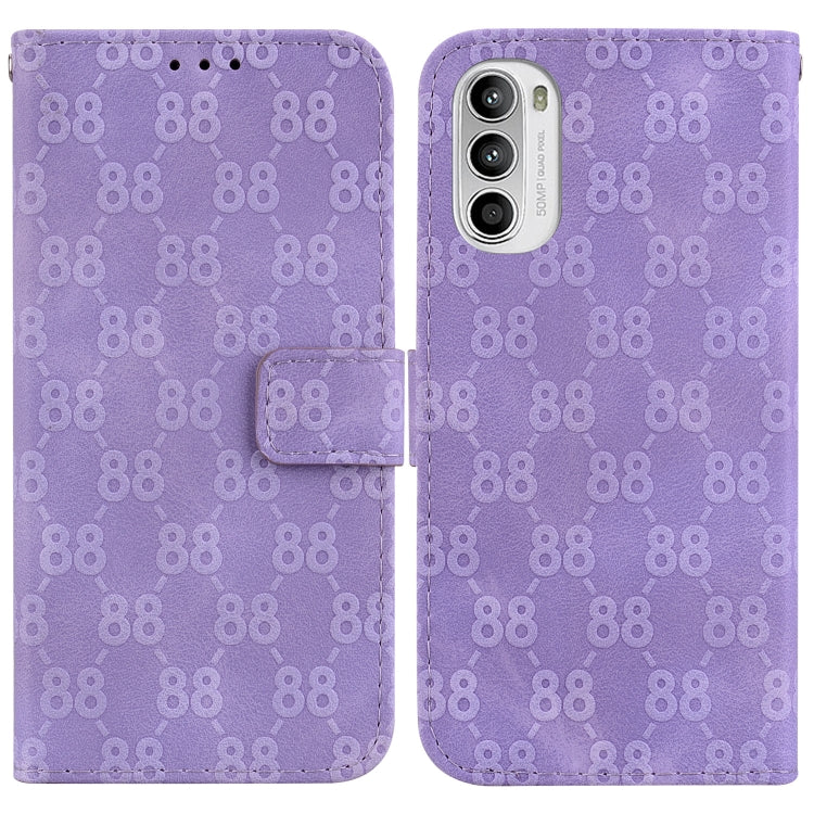 Estuche para Motorola Moto G62 5G de Cuero en Relieve con Doble Forma de 8 (Púrpura)