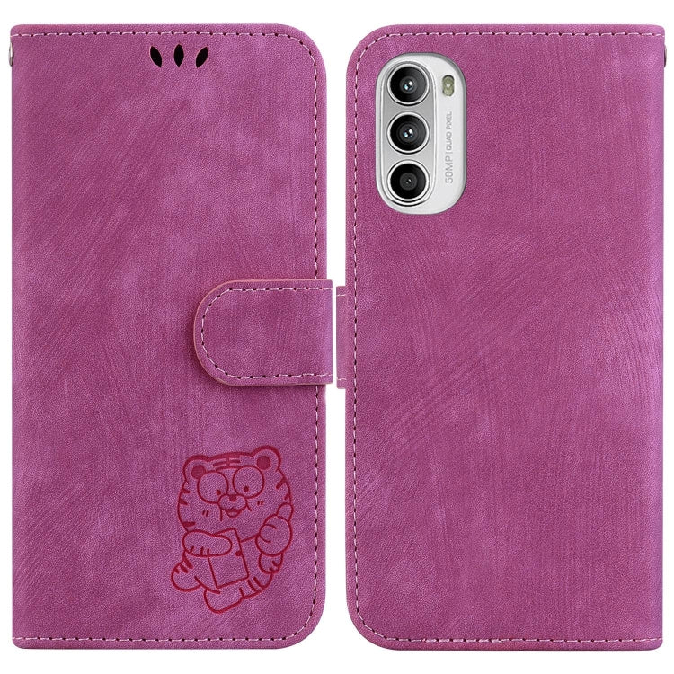 Funda para Motorola Moto G62 5G de Cuero con Relieve Little Tiger (Rojo Rosa)