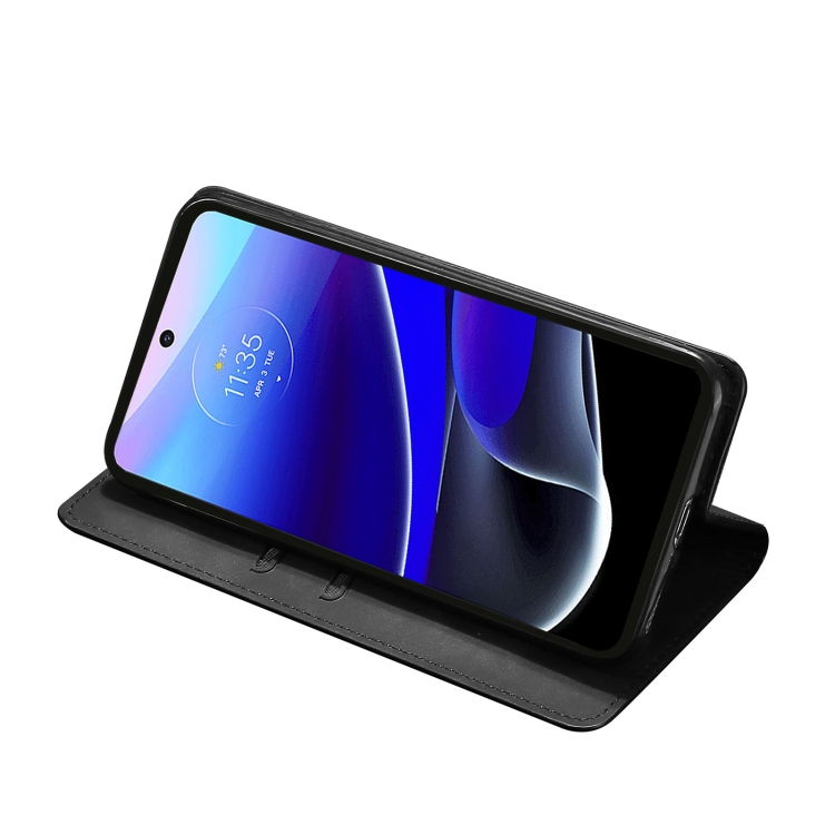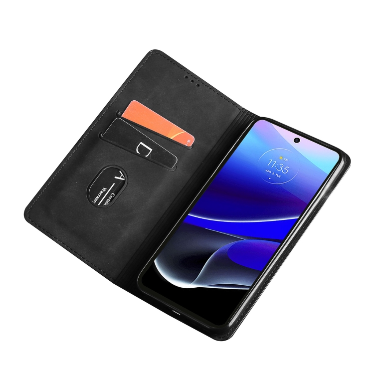 Funda para Motorola Moto G62 5G Skin Feel Tapa Horizontal Magnética de Cuero (Negro)