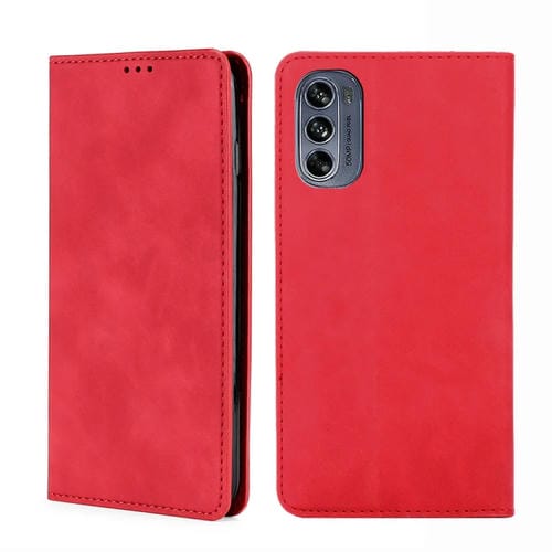 Funda para Motorola Moto G62 5G Skin Feel Flip Horizontal Magnética de Cuero (Rojo)