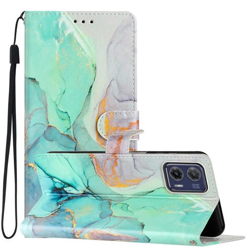 - 1x Estuche para Teléfono Motorola Moto G73 de Cuero con Dibujo Coloreado (Mármol Verde)