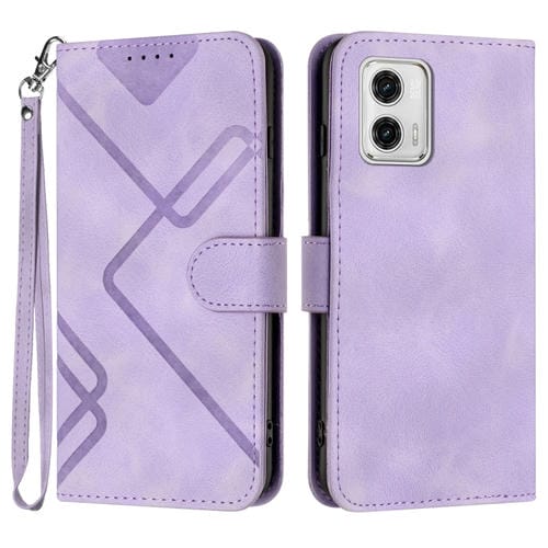 Funda de Cuero para Motorola Moto G73 con Textura Line Pattern Skin Feel (Púrpura Claro)