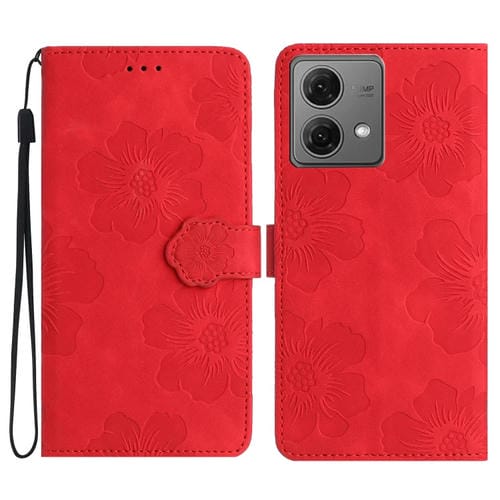 Funda de Cuero para Motorola Moto G84 5G con Estampado de Flores (Rojo)