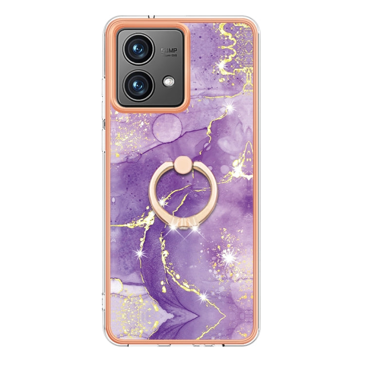 Funda para Motorola Moto G84 Imd TPU Mármol Galvanizado con Soporte para Anillo (Púrpura)