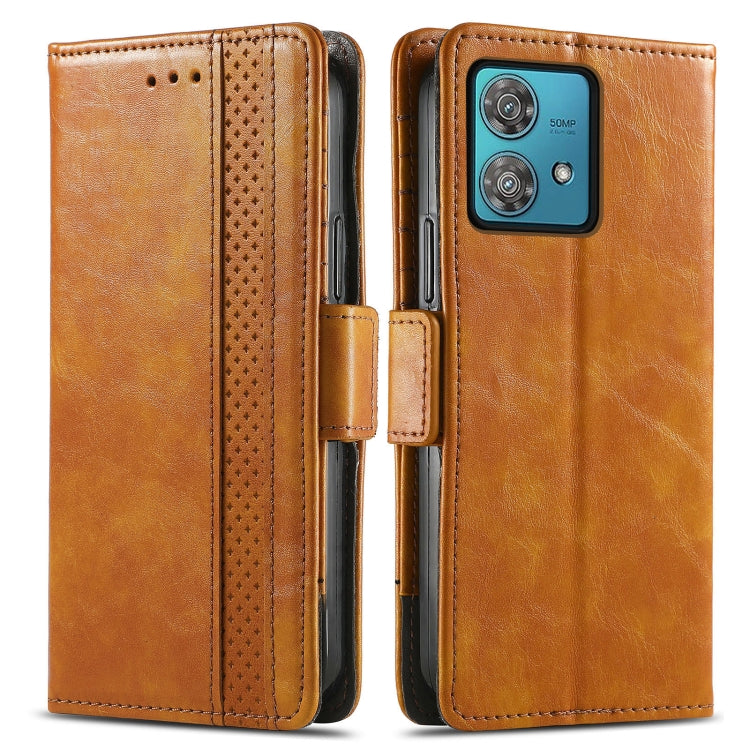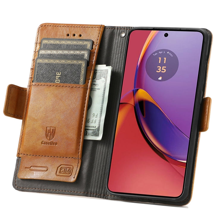 Funda de Cuero Caseneo para Motorola Moto G84 con Hebilla Magnética Dual (Caqui)