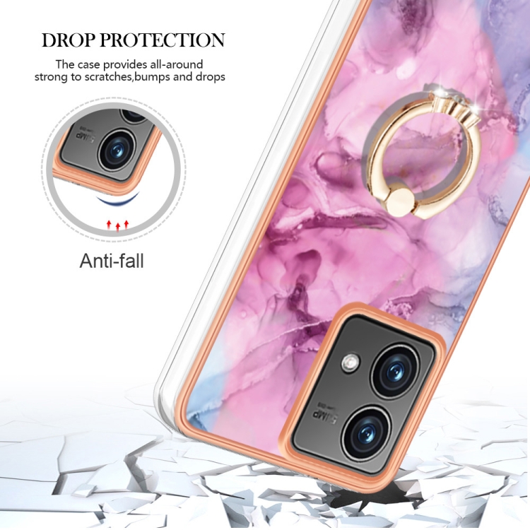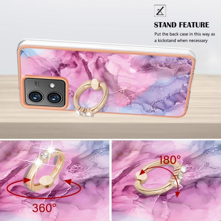 Estuche para Motorola Moto G84 IMD Doble Cara Mármol Galvanizado con Anillo (Rosa)