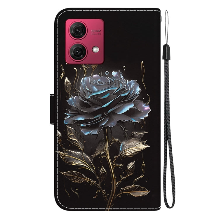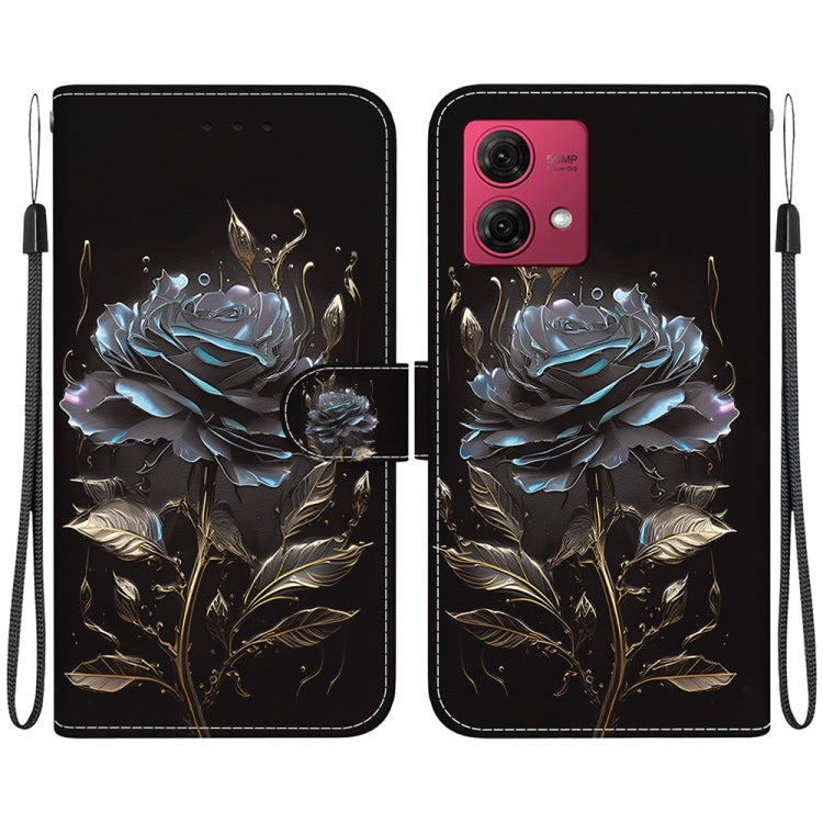 Funda de Cuero para Motorola Moto G84 con Dibujo Coloreado y Textura de Cristal (Rosa Negra)