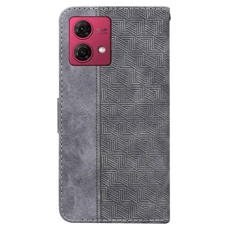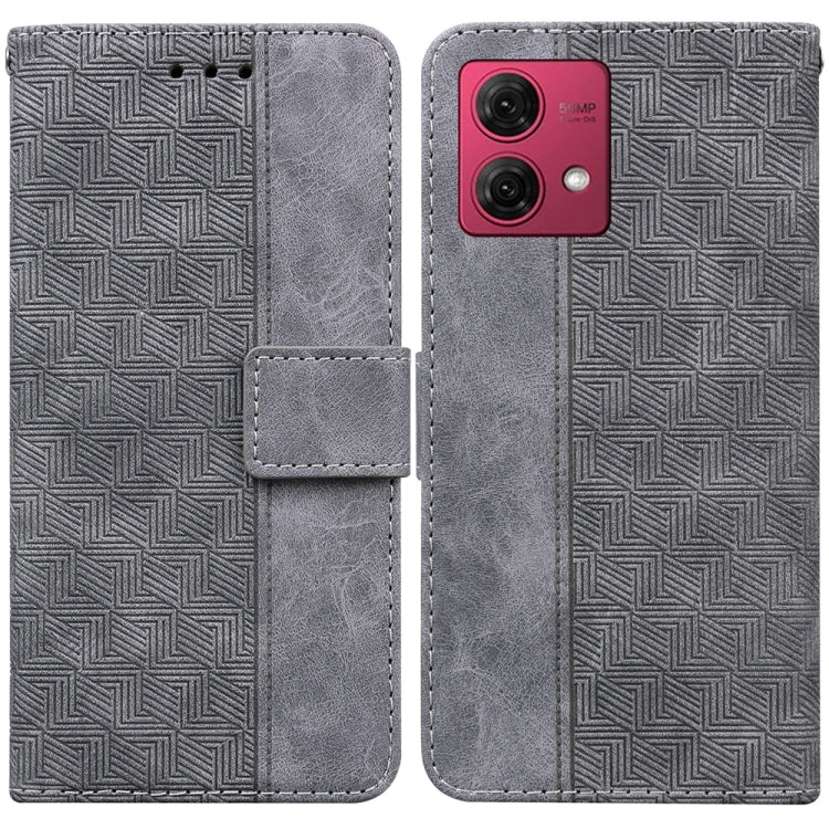 Funda de Cuero para Motorola Moto G84 con Relieve Geométrico (Gris)