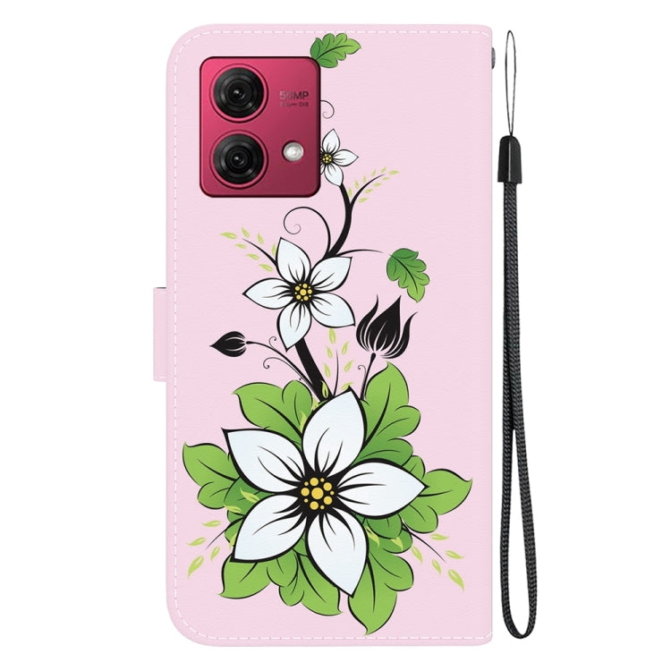 Funda de Cuero para Motorola Moto G84 con Dibujo Coloreado y Textura de Cristal (Lirio)