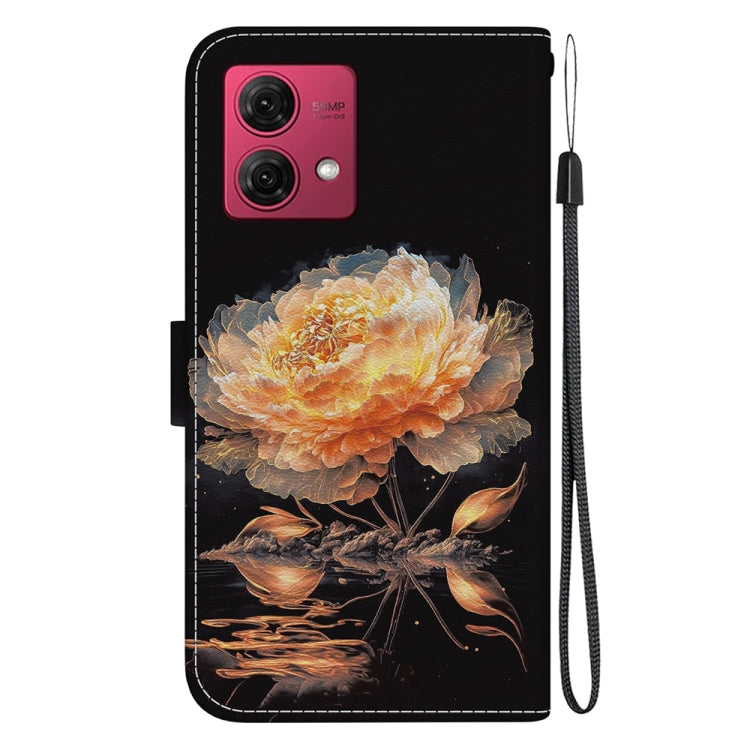 Funda de Cuero Motorola Moto G84 con Dibujo Coloreado y Textura de Cristal (Peonía Dorada)