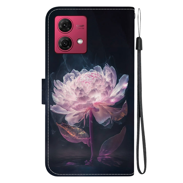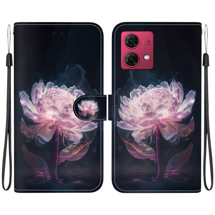Funda de Cuero para Motorola Moto G84 con Dibujo Coloreado y Textura de Cristal (Peonía Púrpura)